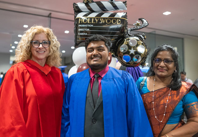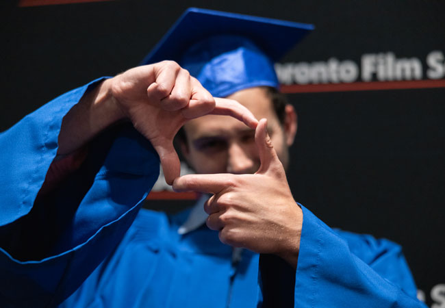 Graduates also heard from this year’s valedictorians over the course of TFS’s lively two-hour graduation ceremony, which saw the conferment of diplomas across the range of both on-campus and online programs offered at Toronto Film School – including Film Production, Acting for Film, TV & the Theatre, Writing for Film & Television, Graphic Design & Interactive Media, Video Game Design & Animation, Video Game Design & Development, and Video Production.